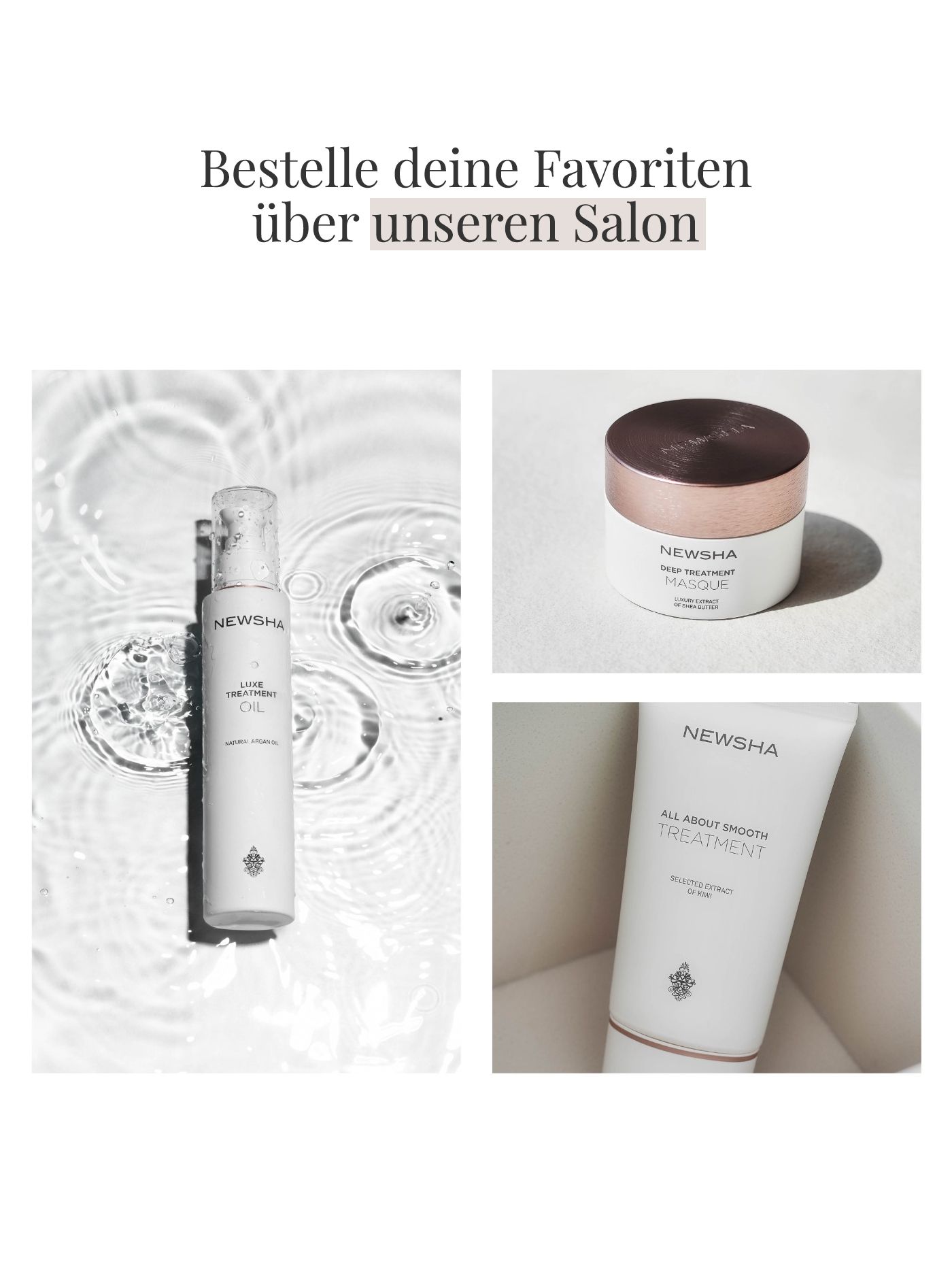 Egal, ob fettiges, strapaziertes, dünnes oder gefärbtes Haar, Newsha hat für dich die perfekte Pflege. Überzeuge dich selbst und lass dich von mir und den Produkten verwöhnen.